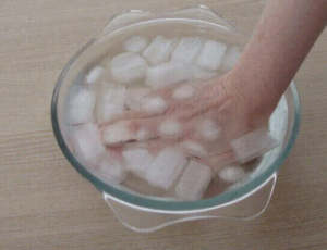 – Procedure: Ask the patient to immerse their non-dominant hand (usually up to the wrist) into the ice water.